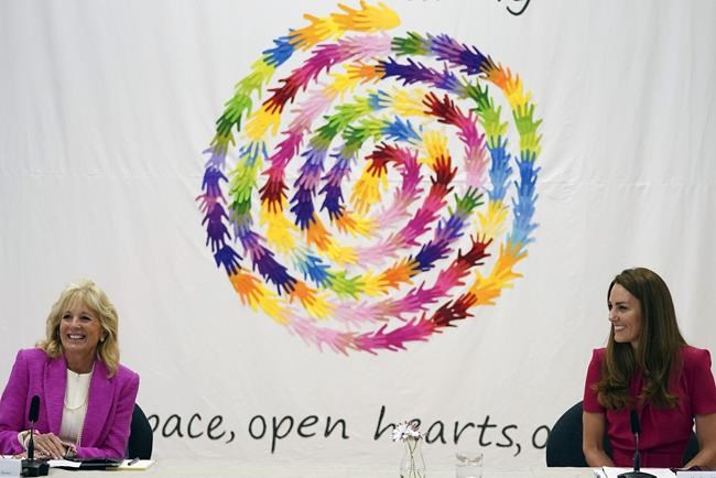 HAYLE, England (AP) — U.S. first lady Jill Biden and the Duchess of Cambridge learned about bunny care Friday on a joint outing to a preschool in southwest England.