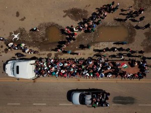 The first group passed through the spot via the river — wading or on rafts — and was advancing through southern Mexico. That group appeared to begin as a collection of about 160 who decided to band together in Honduras for protection against the gangs who prey on migrants travelling alone and snowballed as the group moved north. They are mostly from Honduras, where it started, as well as El Salvador and Guatemala.