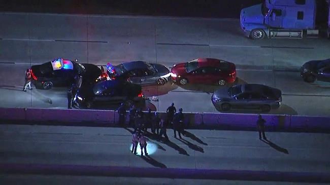 BURBANK, Calif. – Traffic was backed up for miles for thousands of drivers Friday night on a busy Los Angeles-area freeway after a chase that lasted well over an hour and saw the driver repeatedly back into police cruisers.