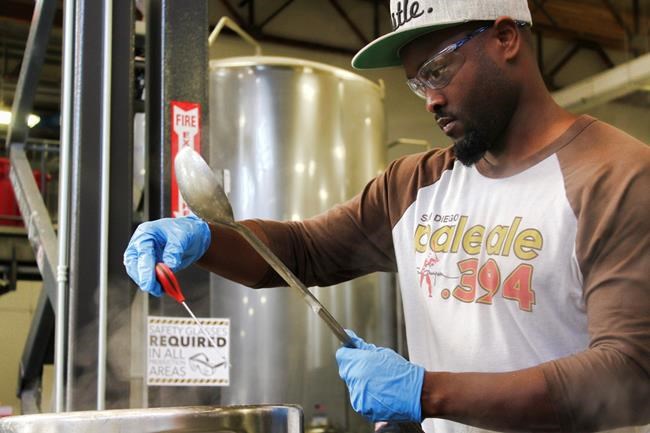 SAN DIEGO – Wearing safety goggles and glancing at his watch, Tony Gwynn Jr. waits for the right moment to add hops to a kettle of boiling water and malted barley as he tweaks his craft beer recipe on a two-keg system dwarfed by giant tanks at AleSmith Brewing Co.