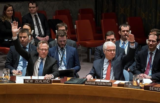The U.N. Security Council on Saturday unanimously adopted a resolution supporting efforts by Russia and Turkey, which back opposing sides in Syria’s civil war, to end the nearly six-year conflict and jump-start peace negotiations.
