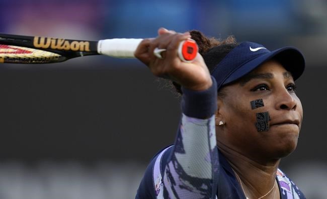 EASTBOURNE, England (AP) — As “What A Feeling” boomed around Devonshire Park, Serena Williams strode onto center court at Eastbourne to a standing ovation for her first competitive tennis match in nearly a year.