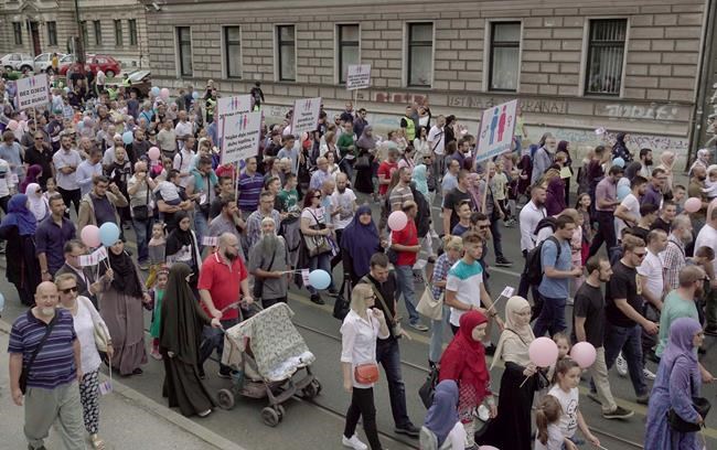 SARAJEVO, Bosnia – Several hundred people marched in Bosnia’s capital Saturday to show their disapproval of a weekend LGBT pride parade that will be the country’s first.