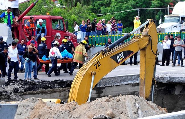 Early Wednesday, a sinkhole spanning two lanes on the recently redone highway connecting Mexico City and the Pacific coast resort of Acapulco opened near Cuernavaca. The victims’ car drove into it and landed upside down.