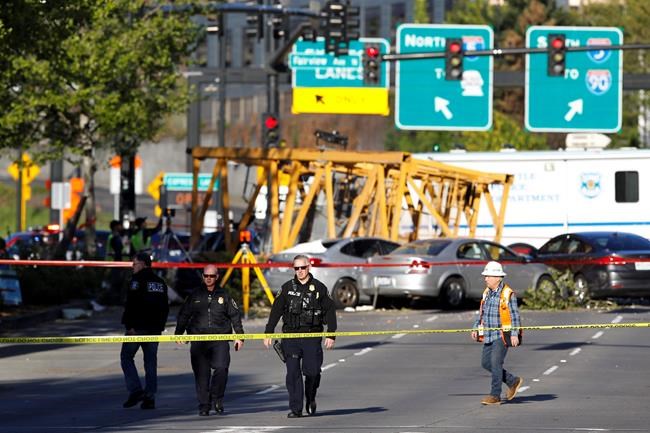 Early pin removal was blamed after a tower crane mast collapsed during disassembly in Dallas in 2012, killing two workers. Terry McGettigan, a tower crane specialist in Seattle, declined to comment on Saturday’s crash, but he wrote a paper on the Dallas collapse warning about the danger of taking shortcuts by loosening or removing the bolts in advance.