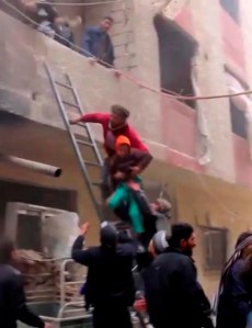 The Britain-based Syrian Observatory for Human Rights and Syria-based activist Mazen al-Shami said Monday’s fighting was concentrated inside a military installation near the suburb of Harasta, where a government force has been trapped for a day.