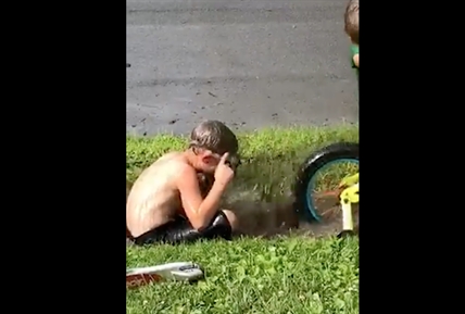 These little tykes take a bike, a puddle and dad's safety goggles and make a day of it. Why bother buying toys?