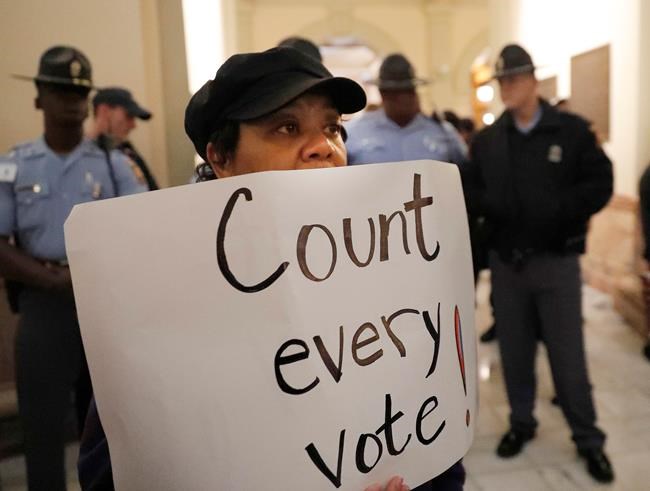 Dozens filled the rotunda in the centre of the Capitol’s second floor Tuesday just as the House was scheduled to convene for a special session. People chanted “Count every vote!” and held signs with the same slogan.