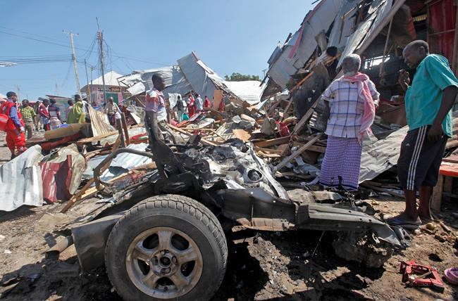 The car bomb was detonated Monday at a busy junction in Mogadishu’s Wadajir district, said Capt. Mohamed Hussein. He said 15 people were injured and the blast appears to have been aimed at soldiers who were gathered at the junction.