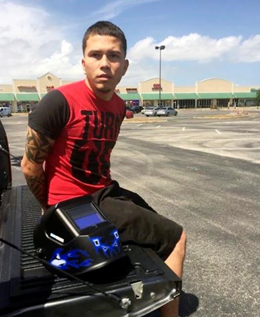 He was arrested next to the stolen car, wearing the welding mask and looking up at the sky.