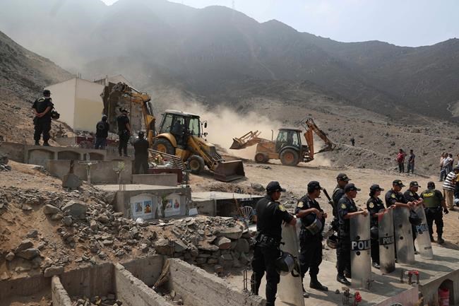 LIMA, Peru – Peruvian authorities on Saturday demolished a mausoleum holding eight Shining Path rebels killed during prison massacres more than three decades ago and relocated their remains to a cemetery in a northern part of Lima.