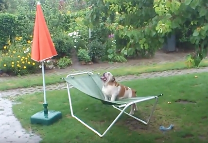 A bit of rain and a hammock is all Columbus the bulldog needs to create a combination slip-and-slide and see-saw.