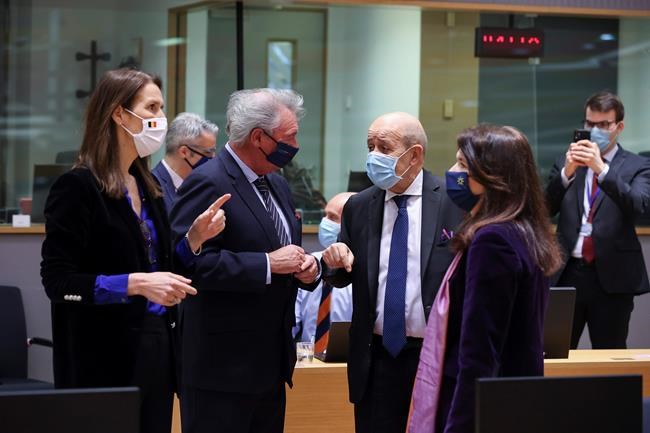 The EU announced penalties on 11 officials, including 10 top military officers. Most had already been sanctioned by the U.S. The Biden administration, meanwhile, targeted two senior officials, including the national police chief, and two military units involved in the suppression of protests.