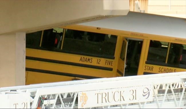 DENVER – The Latest on the crash of a school bus at Denver International Airport (all times local):