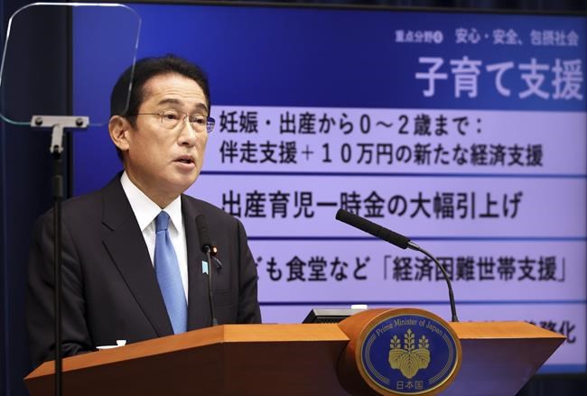 In a televised news conference, Prime Minister Fumio Kishida said the overall size of the stimulus package, including private-sector funding and fiscal measures, is expected to amount to 71.6 trillion yen ($490 billion) and to boost economic growth by 4.6%.