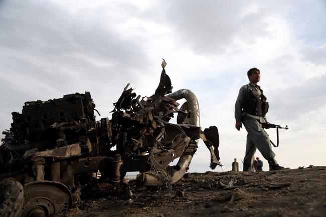 The U.S. and NATO Resolute Support mission says the bomb hit the convoy near Bagram Airfield, the main U.S. base in Afghanistan. The Taliban has claimed responsibility for the attack.