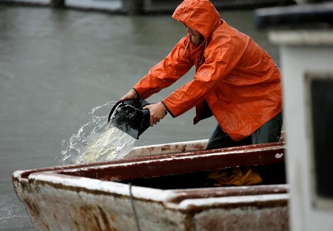 The storm is expected to hover off the New Jersey and Delaware coast on Sunday and Monday. Forecasters warned storm surge flooding could damage buildings near the coast.