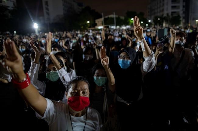 NAKHON PATHOM, Thailand – High school students in Thailand’s capital held blank signs and flashed three-fingered salutes to show opposition to the government, and about 2,000 university students joined a protest on the outskirts of Bangkok on Tuesday as the youth-led pro-democracy movement spread.