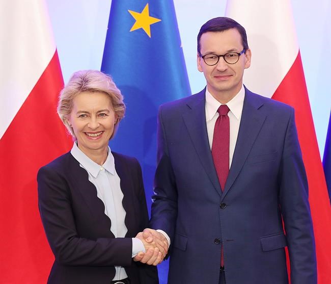 WARSAW, Poland – European Commission President-elect Ursula von der Leyen met with Poland’s prime minister Thursday to discuss the executive body’s agenda for when she takes the helm and points of conflict between the EU and Poland such as migration and the rule of law.