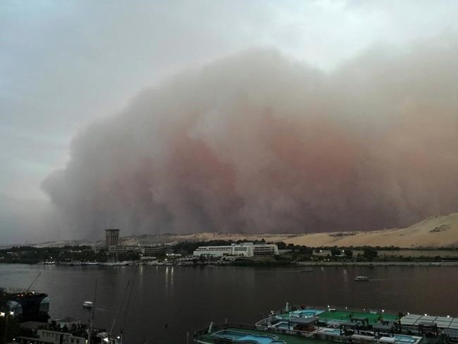 Visuals obtained by The Associated Press show a sandstorm rolling in over the southern city of Aswan on Monday.