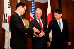 Mattis was speaking at the start of a meeting with South Korean Defence Minister Song Young-moo and Japanese Defence Minister Itsunori Onodera on the final day of the Shangri-La Dialogue security conference. He said allies must remain vigilant.