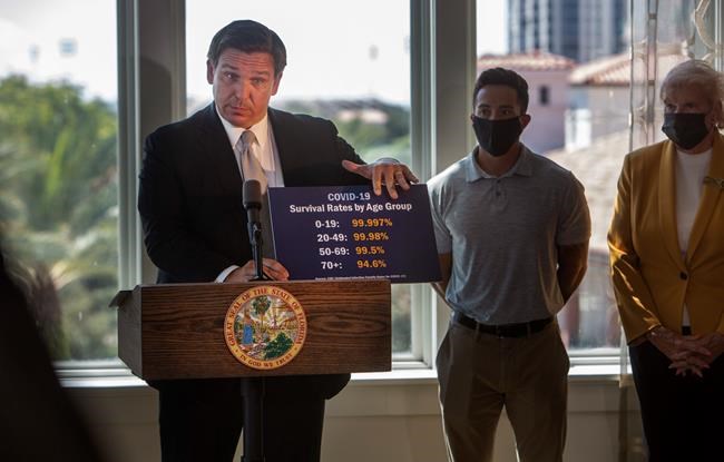 DeSantis, a major ally of President Donald Trump, acknowledged that the pandemic is far from over, but he said the threat has eased and the time has come to reopen for business after six months of “people twisting in the wind.”