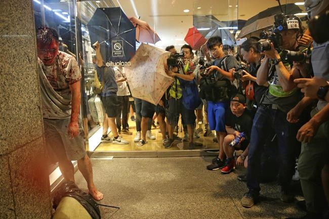HONG KONG – A knife-wielding man slashed several people and bit off part of the ear of a pro-democracy politician in Hong Kong on Sunday, as riot police stormed several malls to thwart protesters who have been demanding government reforms for nearly five months.