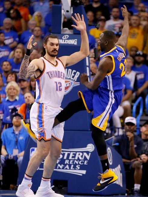 NEW YORK – Draymond Green has been fined $25,000 but not suspended by the NBA for kicking Oklahoma City’s Steven Adams in the groin.