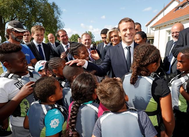 Macron mingled with children for hours Thursday at a recreational centre in Moisson, west of Paris, where youngsters from poor suburbs can practice sailing on the Seine river, as well as play soccer, rugby and other sports for free.