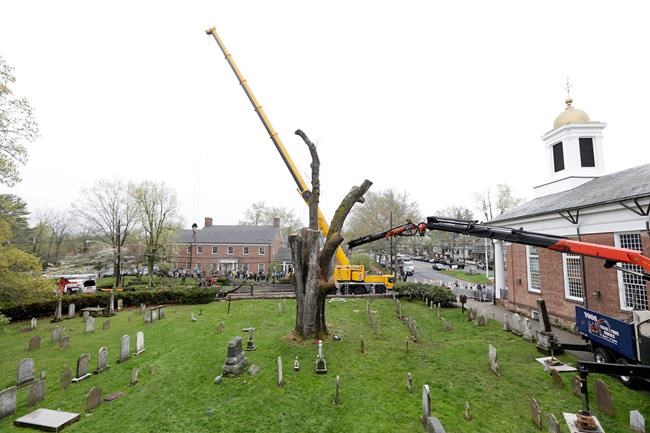 Arborists say the tree stood for nearly 300 years before the church was built in 1717. It stood about 100 feet tall, had a trunk circumference of 18 feet and a branch spread of roughly 150 feet. Its death was likely due to its age.