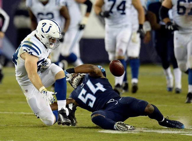 Jacoby Brissett tried to rally the Colts (2-4) to a second straight overtime. But Titans linebacker Wesley Woodyard forced Brissett out of bounds shy of the first-down marker on fourth-and-inches with 2:19 left before going toward midfield to celebrate.