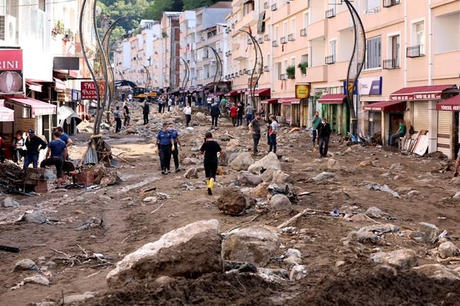 Excavators were seen Monday clearing mud and debris in Dereli, which lies 12 miles (20 kilometres) inland from the Black Sea in Giresun province.