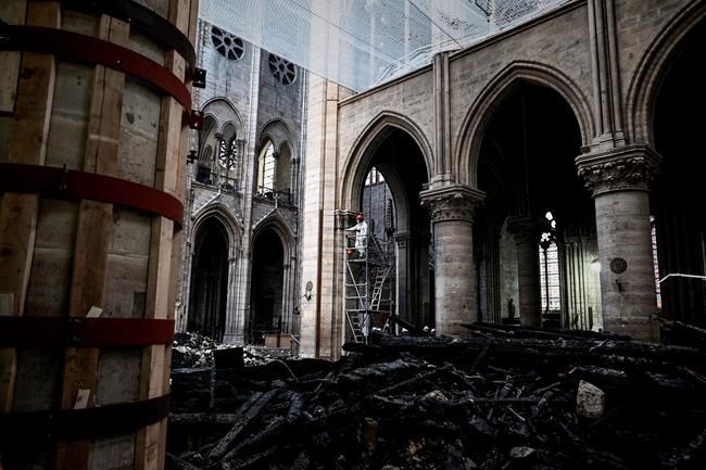 As the detective work continues, workers are taking on what officials have said it one of the most complex operations — cutting down the 50,000 tubes of scaffolding erected for the initial pre-fire renovation. The tubes reached more than 800 C (1,472 F) during the fire, according to a statement Wednesday by the Notre Dame Foundation.