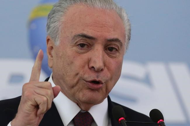 The Folha de S. Paulo newspaper reported Friday that Federal Police working on that probe suspect Temer hid the alleged bribe by purchasing properties in the names of relatives, including his wife and his 9-year-old son. The paper did not name its source, and the police did not immediately respond to a request for comment.