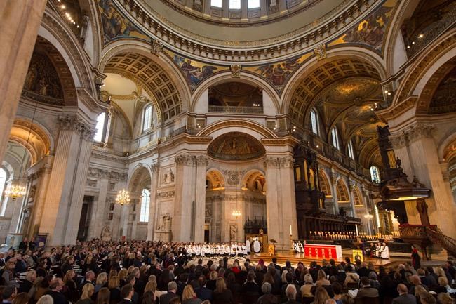The congregation at Tuesday’s service included Bond’s family, friends from the publishing world and celebrities such as writer-comedian Stephen Fry.