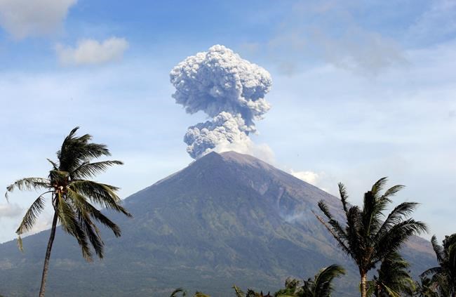 The Indonesian geological agency’s Agung monitoring post said explosions from the mountain began just after 9 p.m. and lasted more than 7 minutes. “Flares of incandescent lava” reached 2 kilometres (1.2 miles) from the crater, it said, setting fire to forests at high elevation on the mountain.