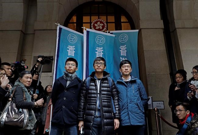 Another member of their Demosisto political party, 21-year-old Agnes Chow, was blocked last month from a March election by officials who said their party’s political platform advocating self-determination or independence for Hong Kong violated the city’s constitution.