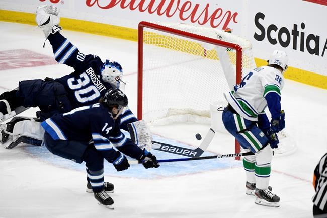 He sprinted into the Jets end and appeared to be sending the puck to Brock Boeser at the front of the net when it bounced in past Brossoit off the arm of Winnipeg defenceman Josh Morrisey to seal the score at 3-1 with his 12th goal of the season.