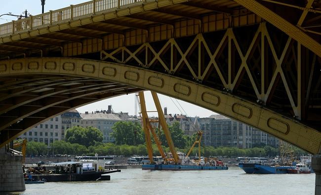 A huge floating crane is in place at Margit Bridge as preparations continue to lift the boat off the river floor.