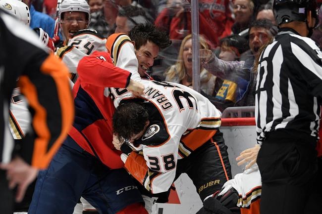 Hathaway was given a match penalty for spitting on Anaheim defenceman Erik Gudbranson in a brawl during the Capitals’ 5-2 victory Monday. That carries with it an automatic suspension pending a review by the NHL, and it is likely the Capitals won’t have Hathaway in the lineup Wednesday night in New York against the Rangers.