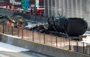 Police said Wednesday that three masked men tied up a female employee before taking off with the 54-foot (17-meter) container. Officials said it contained a variety of goods, including chocolate syrup.