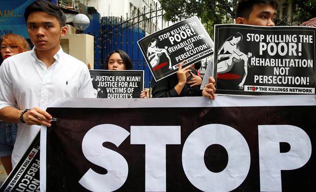 Anger and protests have focused on the killing of delos Santos, who police say was a drug dealer who opened fire with a pistol during a raid. His family, however, says he was mercilessly killed by police as he was pleading for his life and telling the officers he had an exam in school the next day.