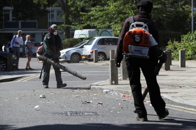 Kensington and Chelsea Police said a gathering in Notting Hill in west London was dispersed by around 2 a.m. Friday. And though there were no confirmed reports of serious injury, it said objects had been thrown at police officers.
