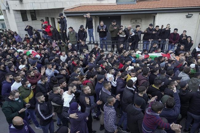 Thousands marched through the street at their funeral, waving Palestinian and factional flags. Some fired guns into the air. The Al-Aqsa Martyrs Brigade, an armed group loosely tied to President Mahmoud Abbas’ Fatah Party, said the three are “heroic martyrs” and vowed revenge.