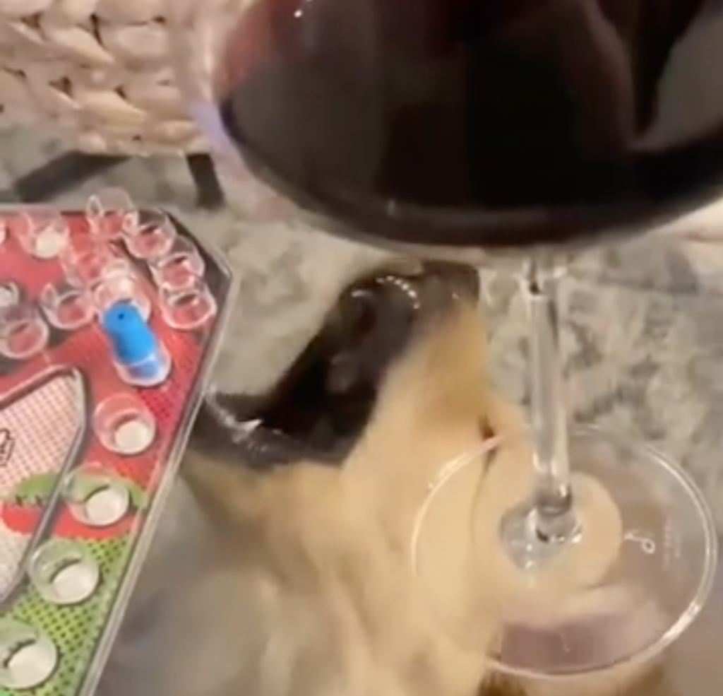 Watch as this adorable dog tries his best to get a taste of the wine or the game Trouble.