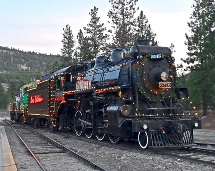 The Kettle Valley Railway Society's steam train is a popular tourist attraction which travels 16 kilometres high in the Okanagan hills in a restored 1912 steam locomotive.