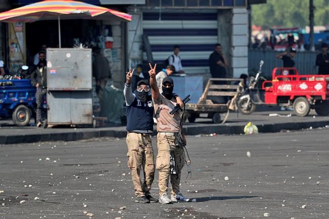 At least 12 protesters were wounded in new confrontations with security forces in and around central Baghdad’s Khilani Square. Most were hit directly with tear gas canisters, according to security and hospital officials who spoke on condition of anonymity in line with regulations.