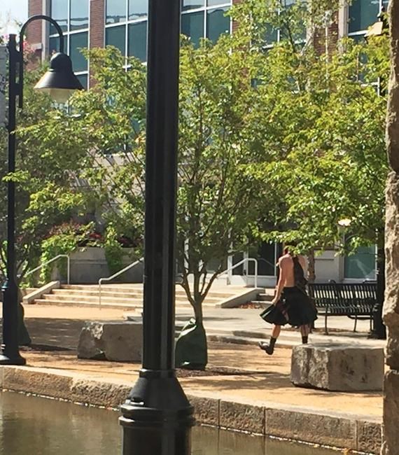 Police and witnesses say that before he was shot, Schoessel had been walking around downtown with an axe and a long knife, wearing nothing but a kilt and combat-style boots.
