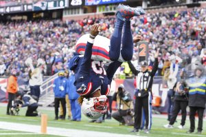 One of the biggest cheers from the thin crowd on a rainy, cold day came when former University of Tennessee quarterback Joe Milton’s 48-yard TD pass putting the Patriots up 14-7 was shown on the video board.