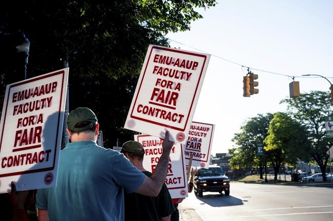 Several dozen faculty at the Ypsilanti school about 35 miles (56 kilometers) southwest of Detroit started picketing on Wednesday. The union represents more than 500 tenured and tenure-track faculty.